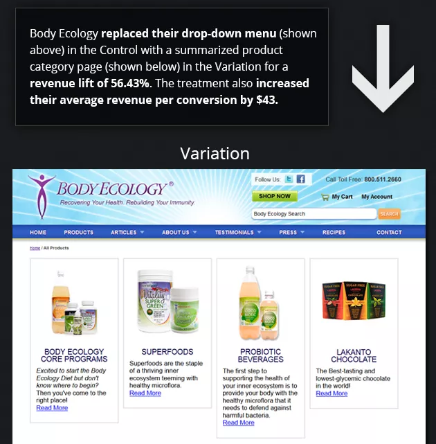 In a study by VWO, using a firm navigation menu instead of a drop down one boosted conversions by 56%.